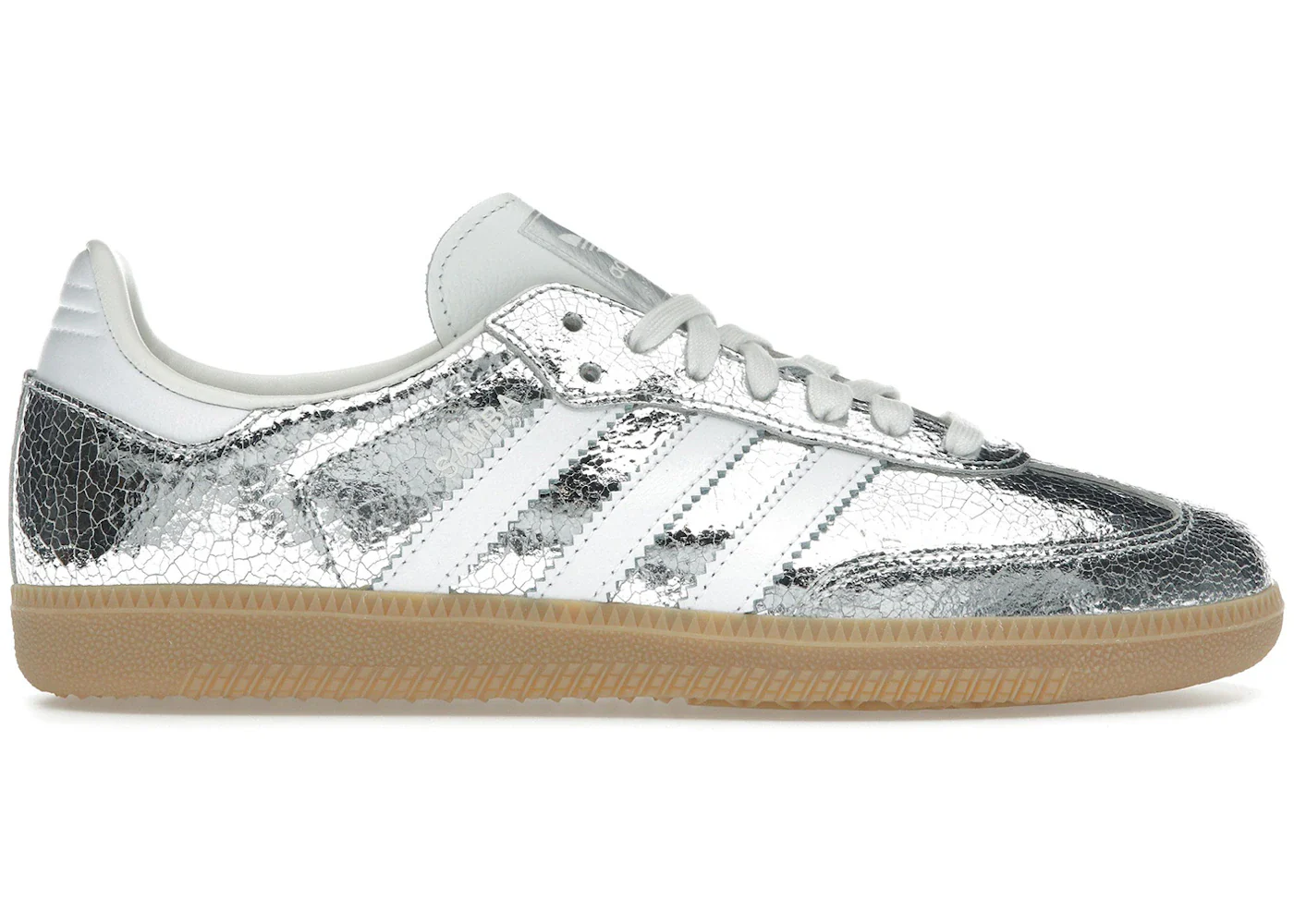 Découvrez la paire de Samba OG Silver Metallic Cracked Leather, une édition limitée qui réinvente l’héritage classique d’Adidas. Fabriqués à partir de cuir métallique craqué, ces sneakers font forte impression grâce à leur design audacieux et unique. Cette teinte argentée arrive à la fois futuriste et nostalgique, capturant l’essence des années 80 tout en restant résolument contemporaine.