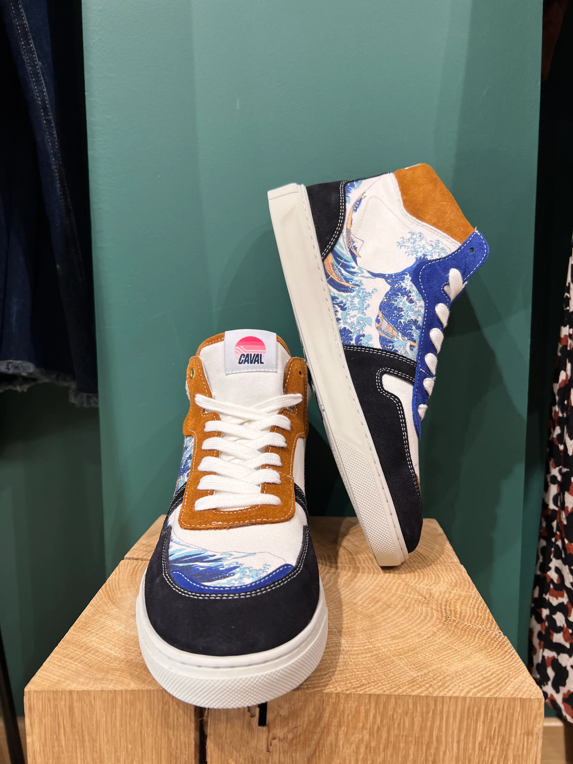 Caval s’est inspirée pour cette sneaker de la célèbre estampe de 1831 par Katsushika Hokusai.