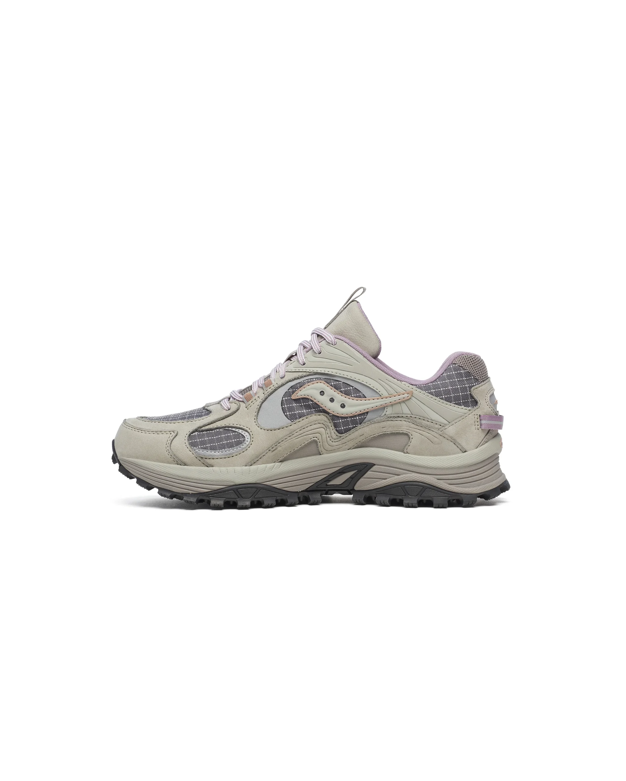 Découvrez la Saucony Grid Aura X, une sneaker hybride pensée pour explorer aussi bien les chemins escarpés que les rues urbaines avec style.