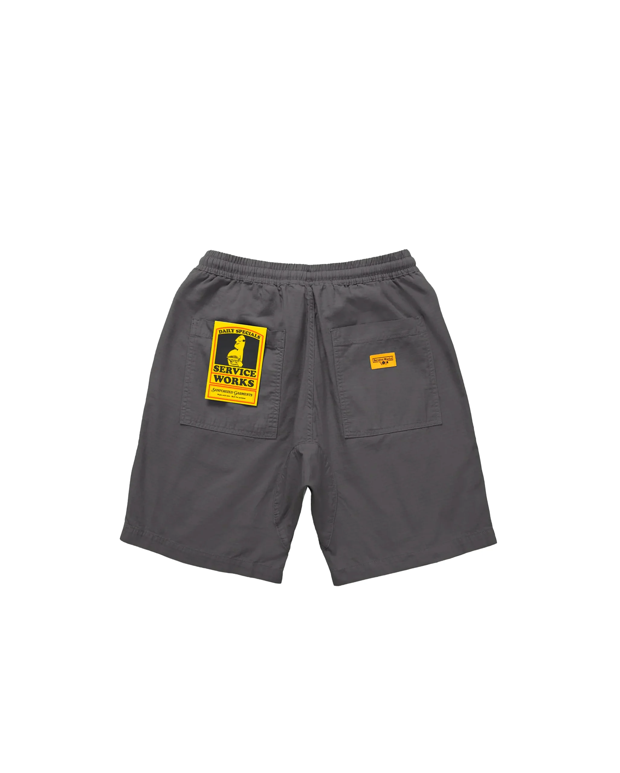 Découvrez le short Ripstop Chef de Service Works, pensé pour allier durabilité et confort au quotidien. Confectionné en ripstop 100 % coton biologique de 250 g/m², il adopte une coupe décontractée avec une ceinture élastique et cordon de serrage pour un ajustement parfait. On retrouve des poches fatigue à l’avant et des poches arrière rehaussées de l’étiquette tissée Service Works, fidèle à l’ADN utilitaire de la marque.