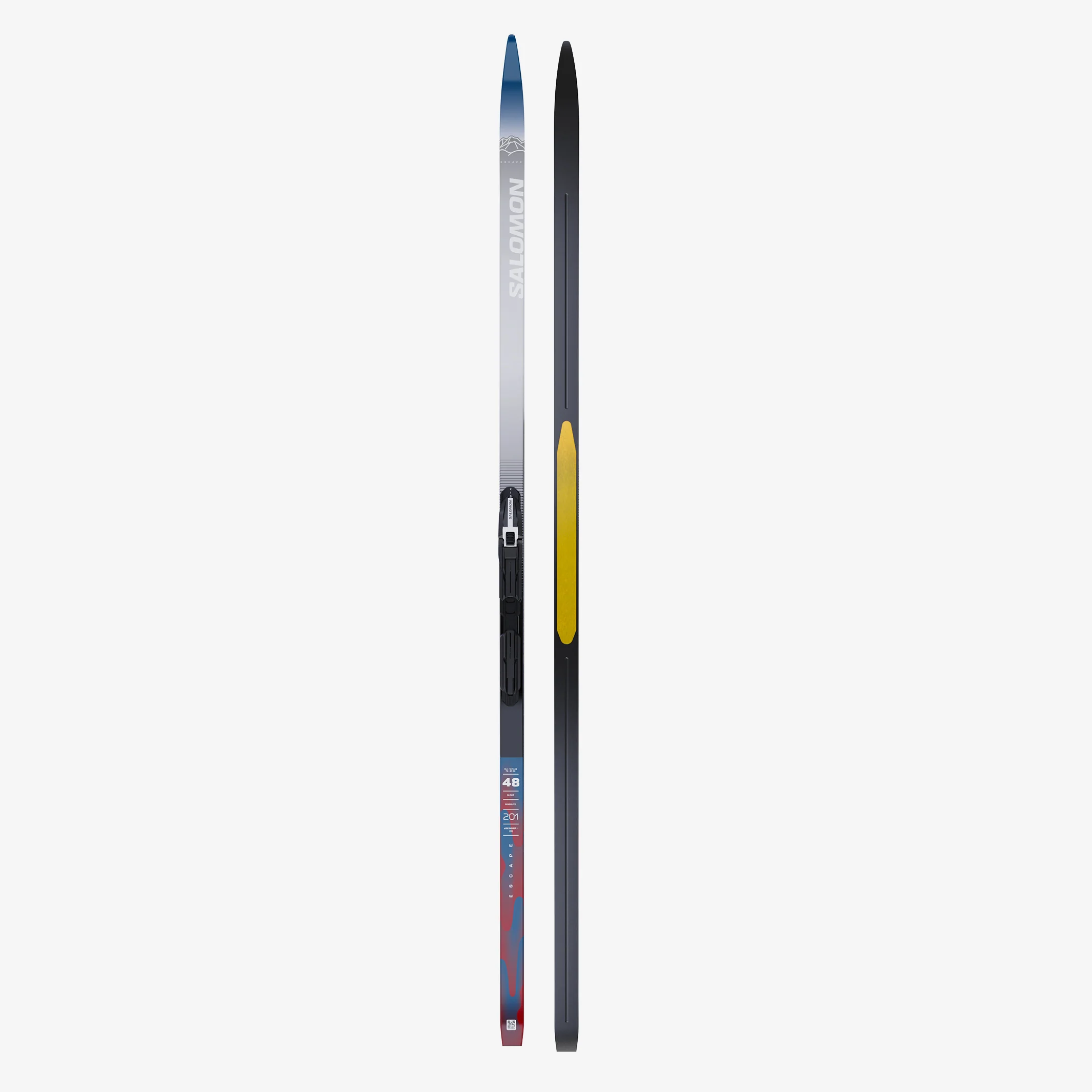 * Fixations incluses L’ESCAPE eSKIN de Salomon est un ensemble de skis à la fois sportif et classique conçu pour une stabilité et un contrôle maximum. Son cambre talon-pointe bas et sa technologie SKINGRIP+ lui confèrent une adhérence sûre et sans fart. Le ski est livré pré-monté avec la fixation sécurisée Prolink Shift.