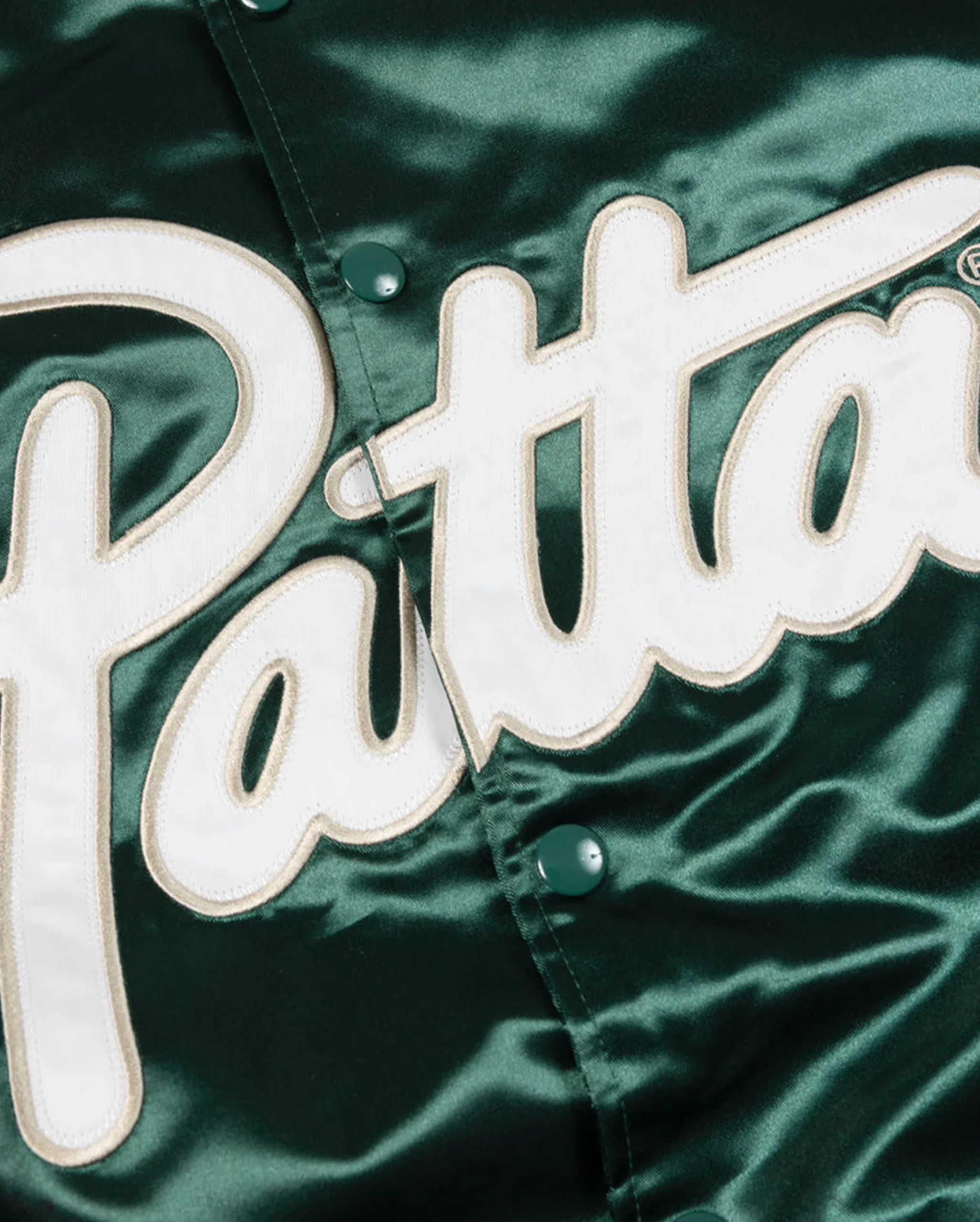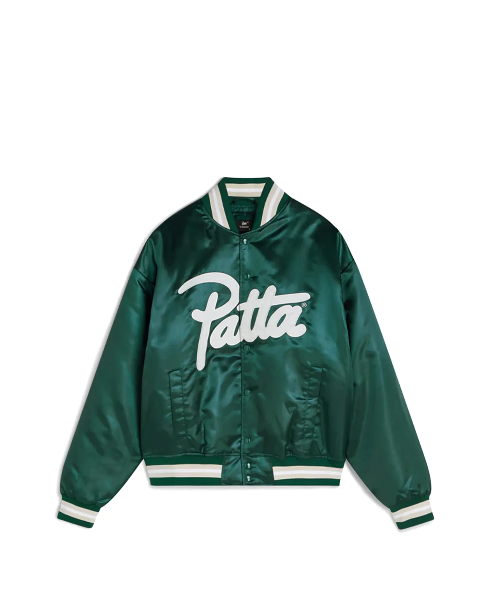 Découvrez la veste Patta Script Logo Satin Varsity Jacket, de retour suite à une forte demande. Conçue en 100 % polyester avec une finition déperlante, elle adopte une coupe bomber classique et s’impose comme une pièce incontournable.