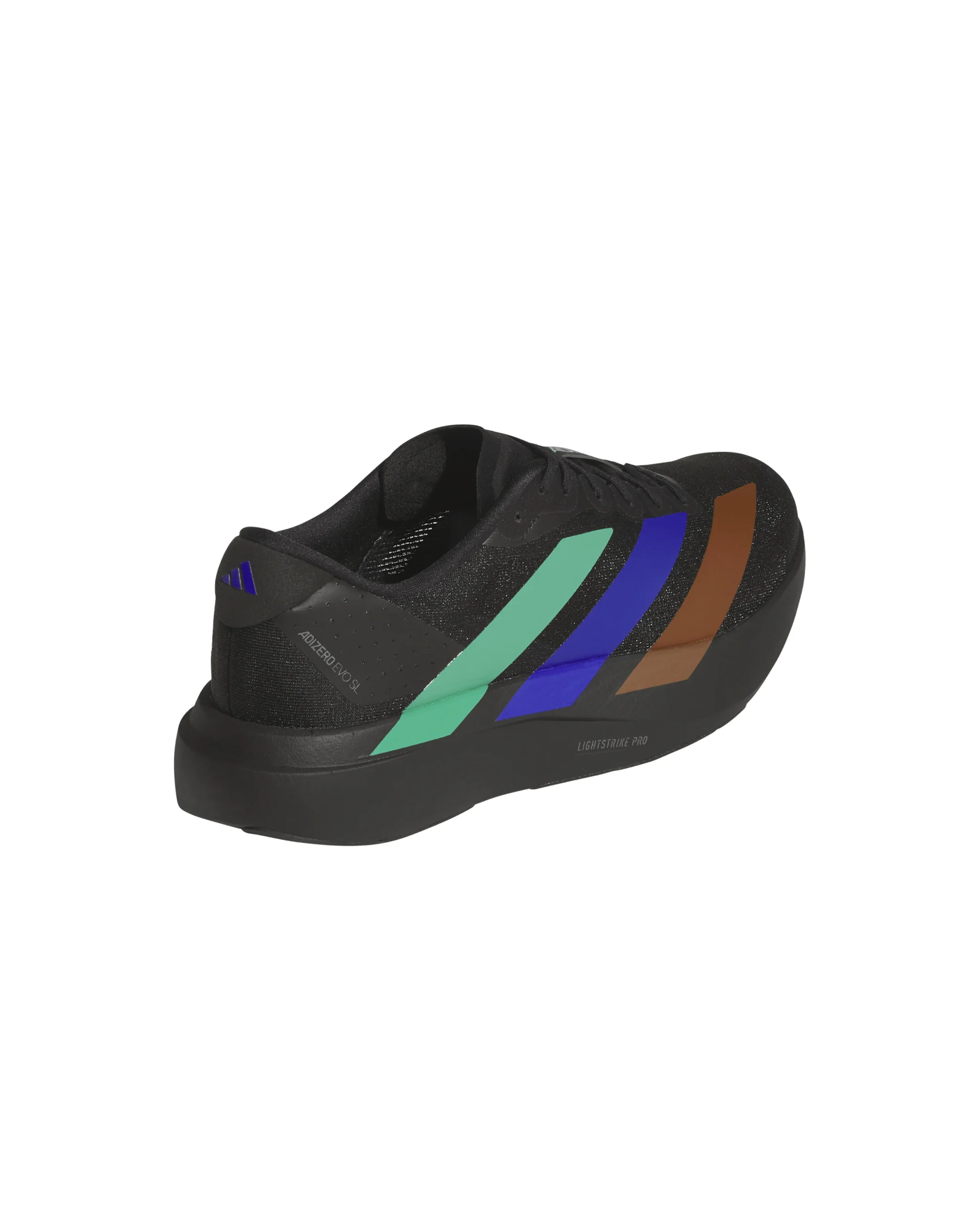 Côté performance, la paire conserve l’ADN de l’Adizero EVO SL avec une tige légère et matelassée et une semelle intermédiaire LIGHTSTRIKE PRO assurant amorti réactif et confort dynamique.
